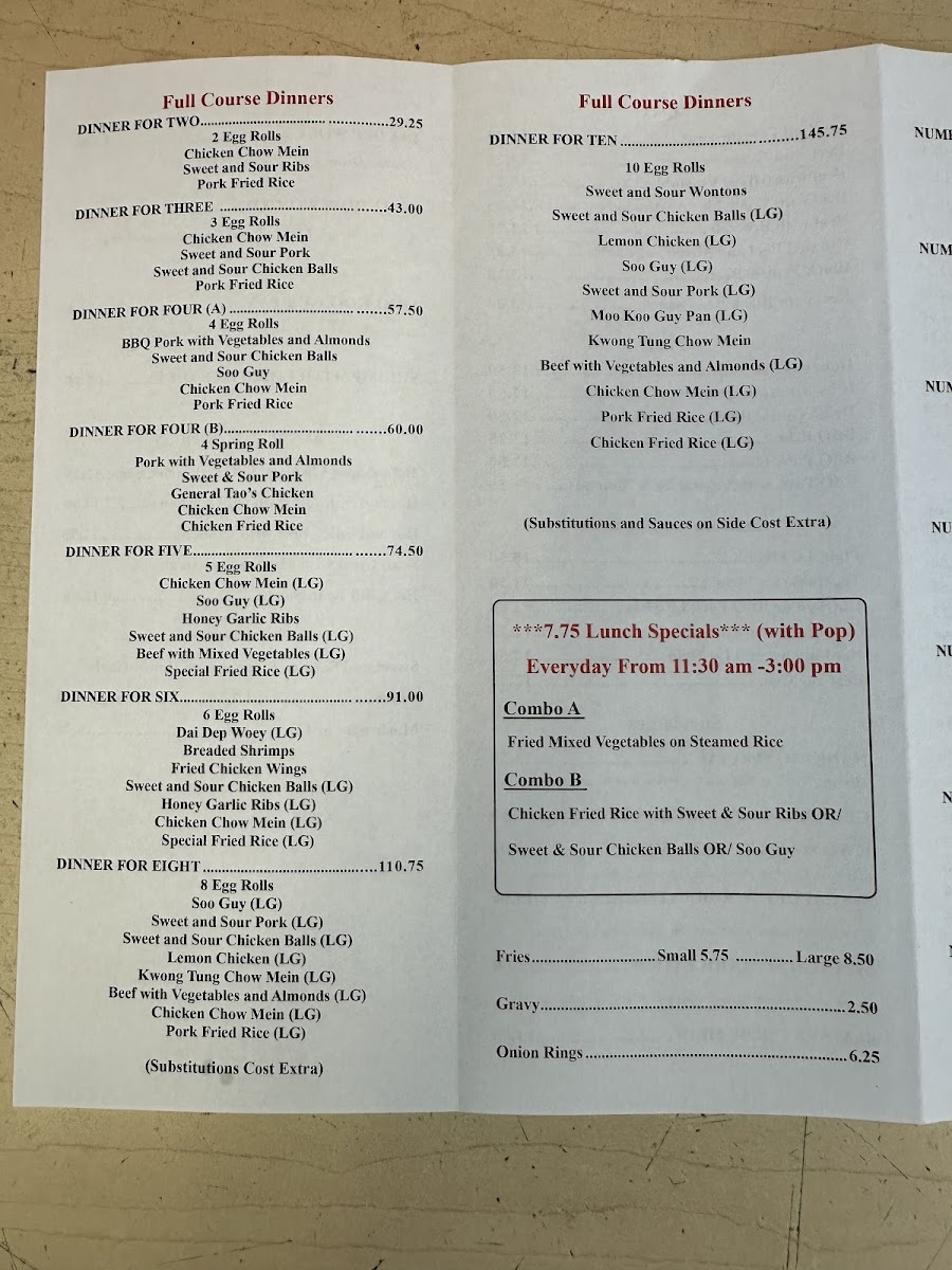This selection invites guests to slow down and enjoy approachable Chinese cuisine in a setting that feels familiar and unpretentious, whether dining in or taking food home. The menu’s moderate pricing and dependable quality also complement this easy-going dining experience.